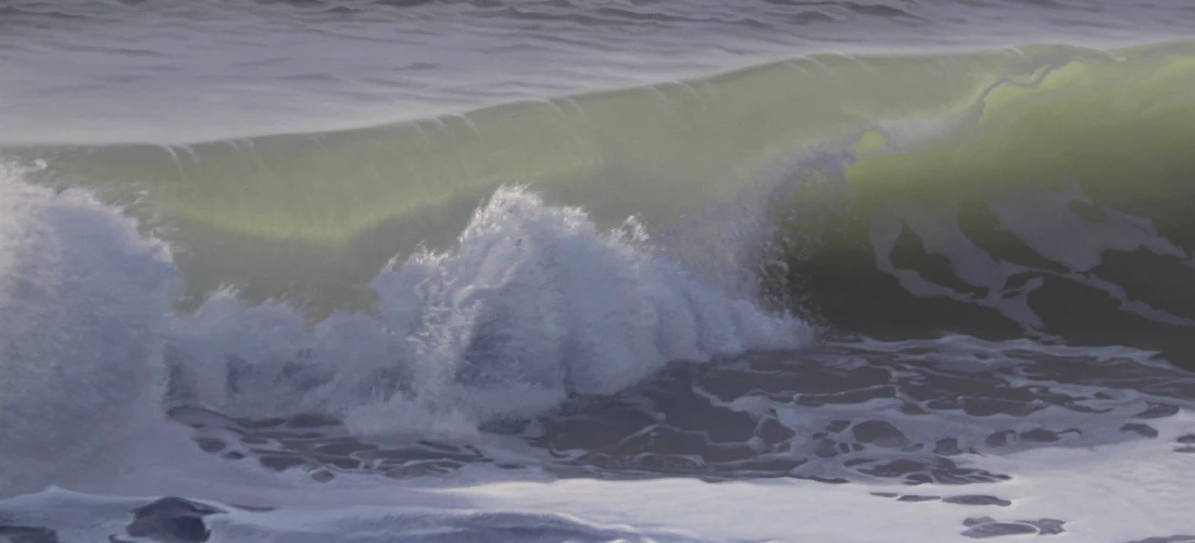 Malte von Schuckmann widmet sich in klassischer Öltechnik dem Meer: Wellen, Gischt, Schaumkronen und der endlose Horizont erscheinen in seinen Bildern als leuchtende, ineinanderfließende Bewegungen. Das Wasser beginnt von innen zu strahlen. Albrecht Behmel überzieht seine teils zitierten Motive mit ornamentalen Linien und vibrierenden Farbfeldern – in seinem „Abstrahismus” verbinden sich Pop, Camouflage und kartografische Struktur.