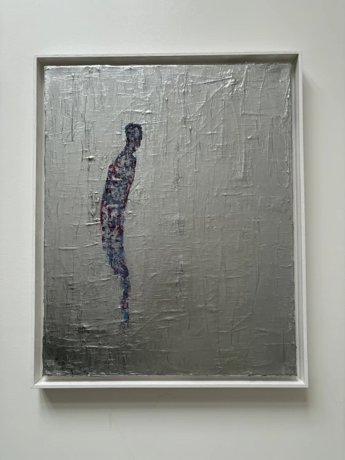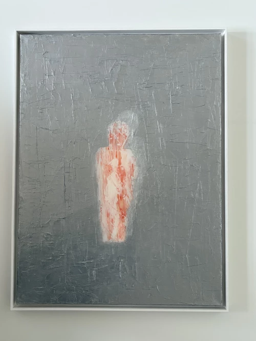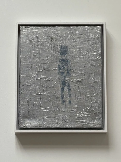 In diesen Grund treten Figuren in reduzierter Form ein, einzeln oder in kleinen Gruppen. Ihre Konturen bleiben offen, ihre Farbigkeit ist in das Schichtgefüge eingebunden. Ihre Präsenz entwickelt sich aus der Spannung zum umgebenden Feld. Wo mehrere Figuren zusammentreffen, entsteht ein Gefüge aus Nähe und Distanz, das den Blick lenkt.